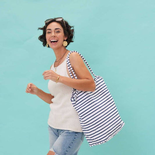 Baby Blue Preppy Stripe Medium Duffel-Wipeable