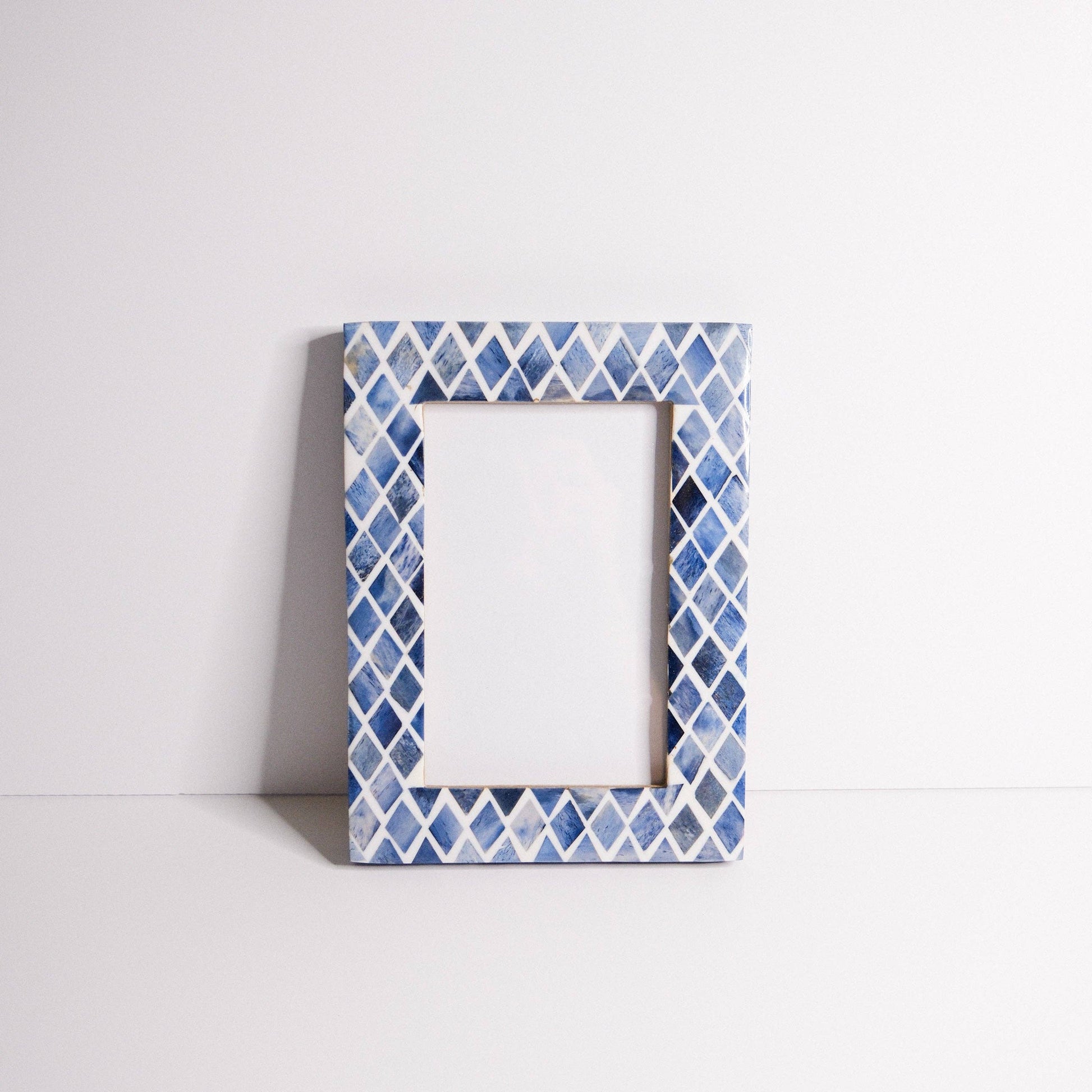 Crafted with love and care, this frame is the perfect blend of contemporary style and timeless allure, adding a touch of refinement to any space Outside: 7.60” L x 5.55” W Frame: 3.5” L x 5.5” W Fits a 6” L x 4” W Photo. Weight: 13.90 oz Material: Bone, and Resin. Ethically made in India. (Reference: Line)