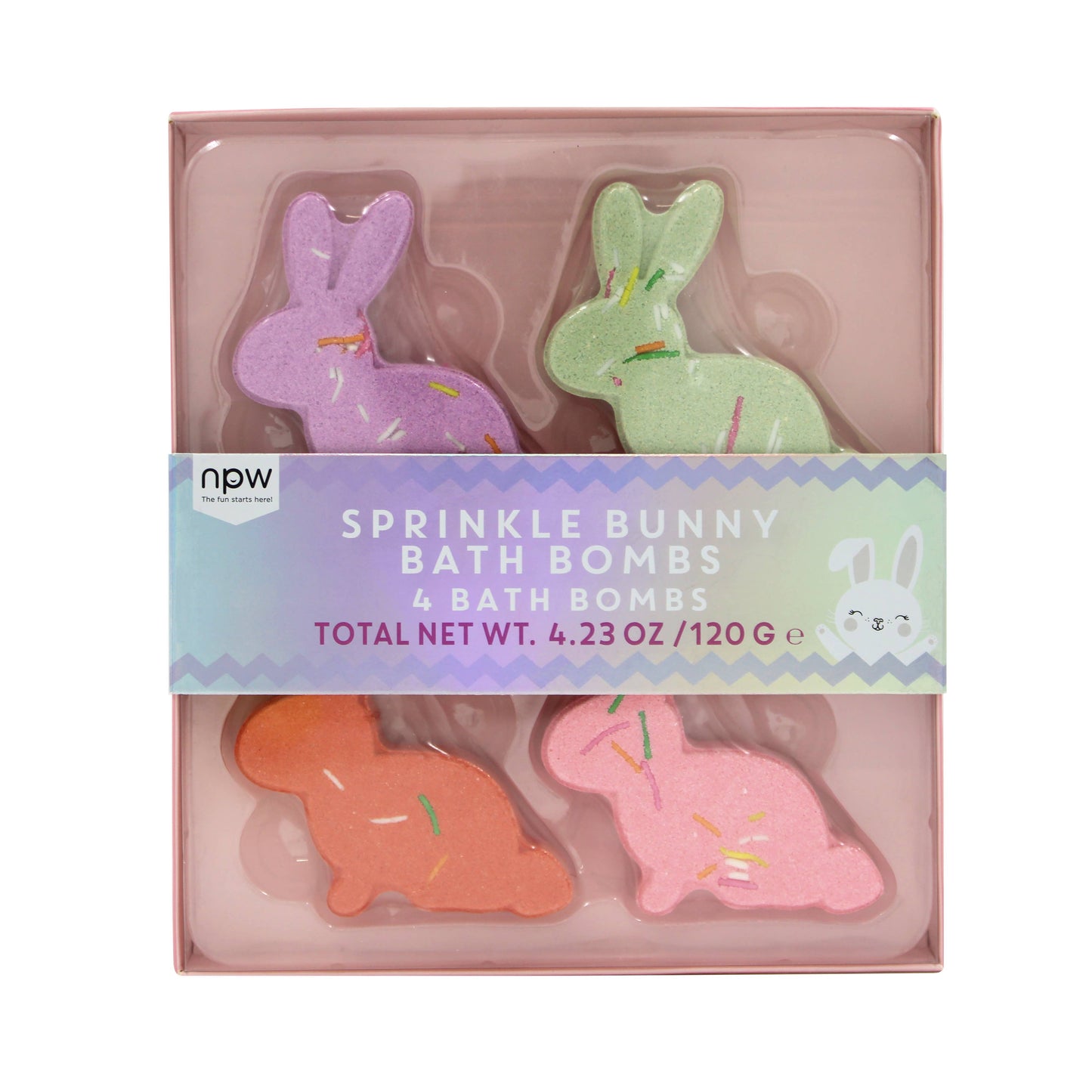Transform your bath time into a springtime celebration with these delightful Sprinkle Bunny Bath Bombs! Shaped like adorable bunnies and sprinkled with colorful accents, this set includes four beautifully crafted bath bombs in pastel shades of purple, pink, green, and orange.