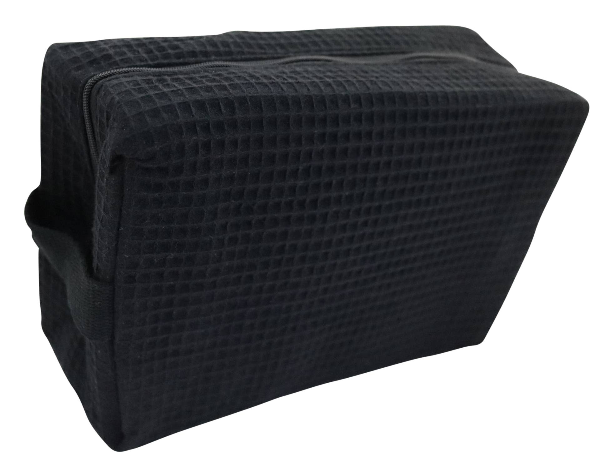 Large Cotton Waffle Cosmetic Bag. 9"x7"x3.5" with PVC liner and inner side pocket.