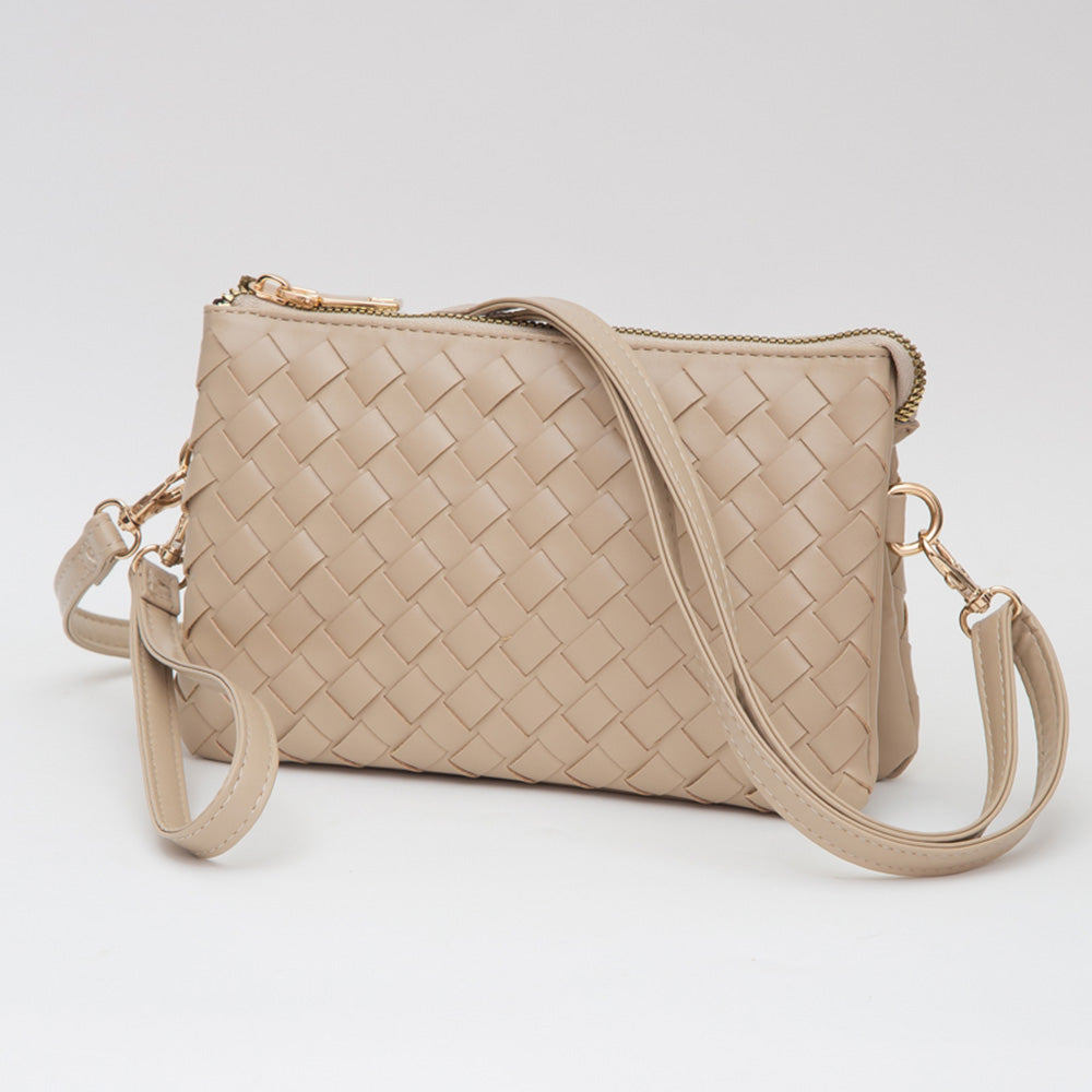 Faux Leather Woven Flap Envelop Crossbody Bag
