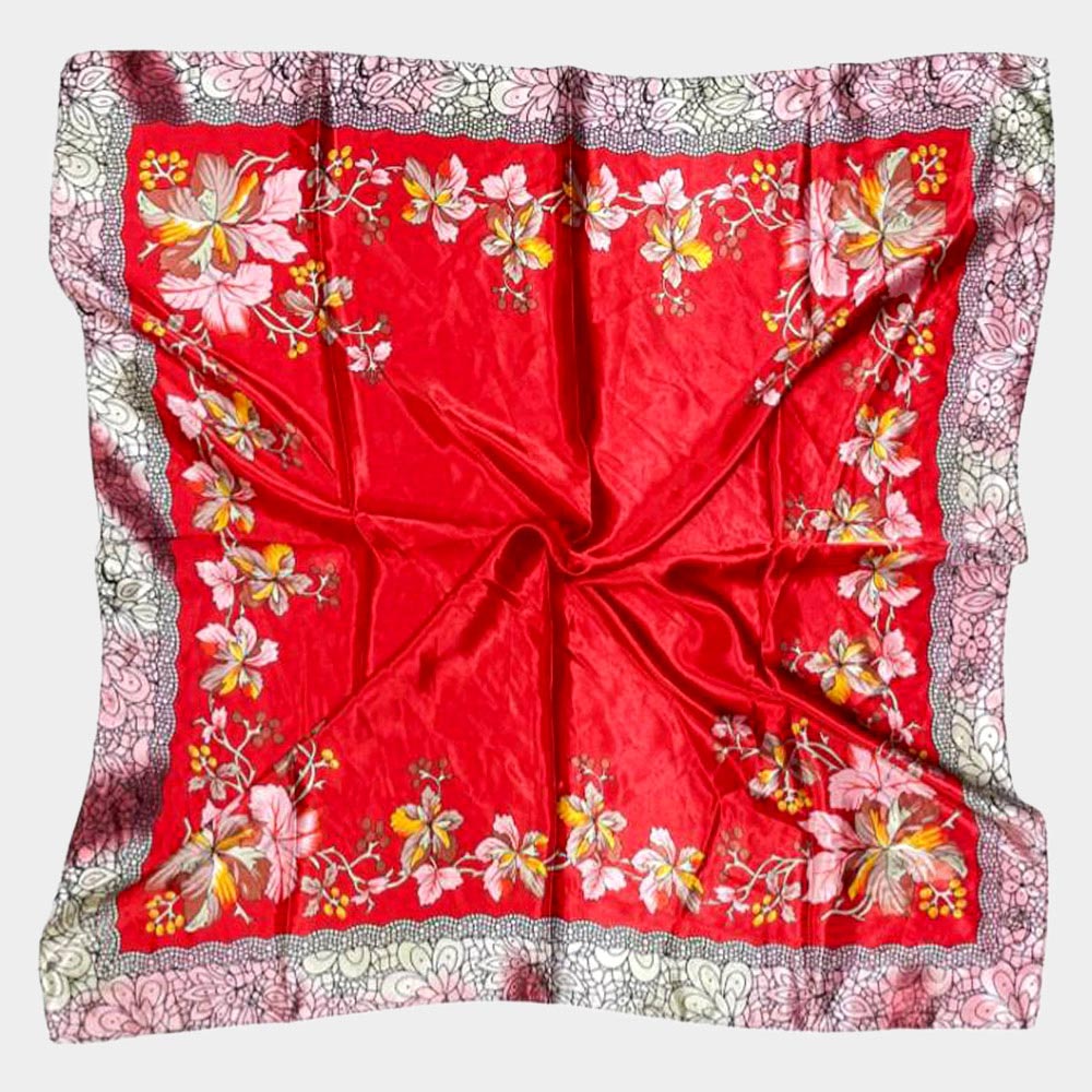 Flower Pattern Printed Square Silky Satin Scarf Shawl