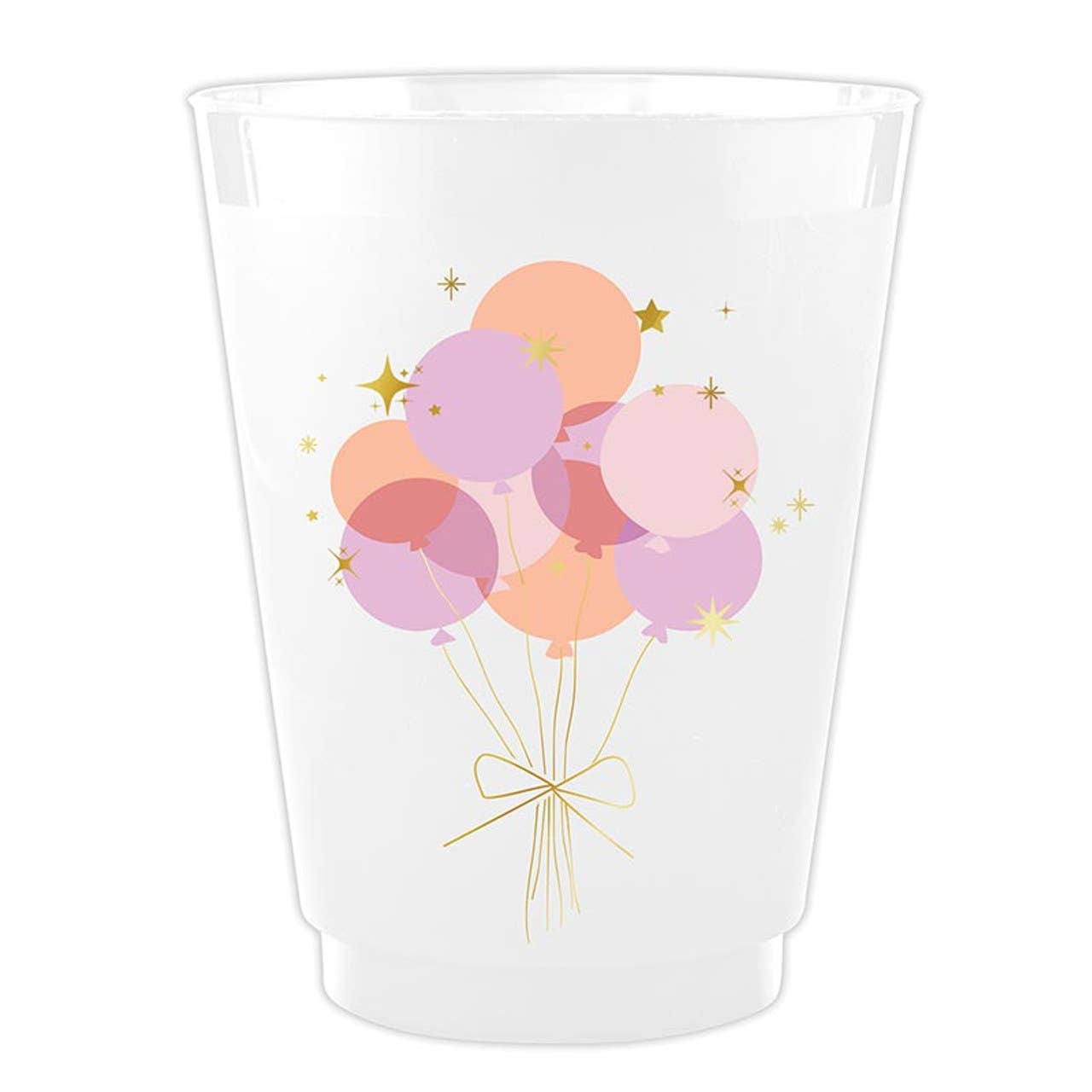 Party cup design featuring vibrant balloon graphics, bringing a festive flair to any birthday celebration.