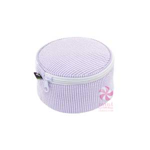 Cute as can be! This little cutie is lined with little open pockets for jewelry or makeup. Sweet little gift for every age! 6" diameter by 3.5" h