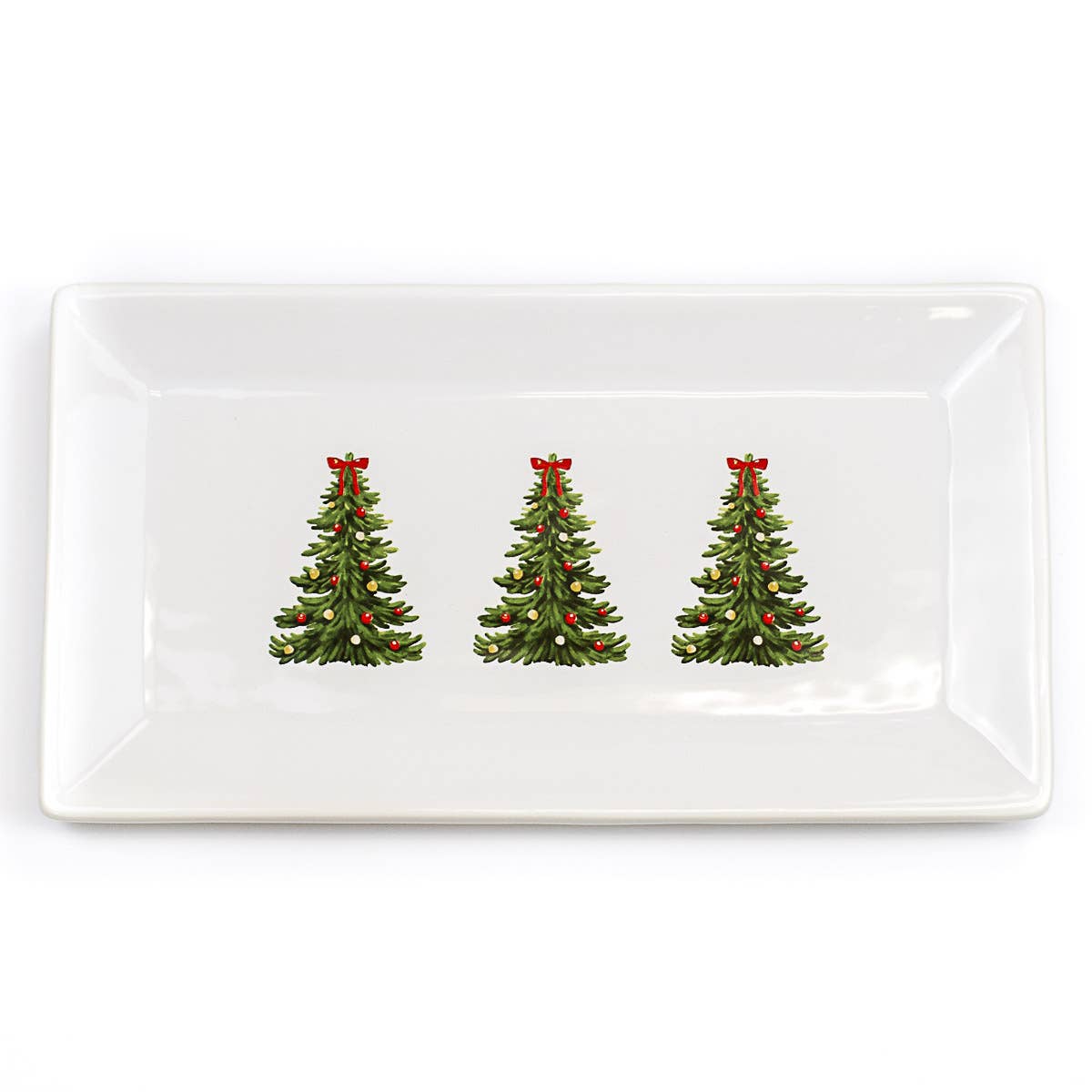 Noelle Tree Rectangle Platter White/Green/Red 12x6.5