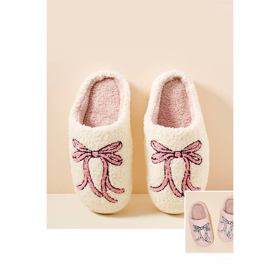 Pink Bow Fuzzy Fleece Soft Slipper: PINK