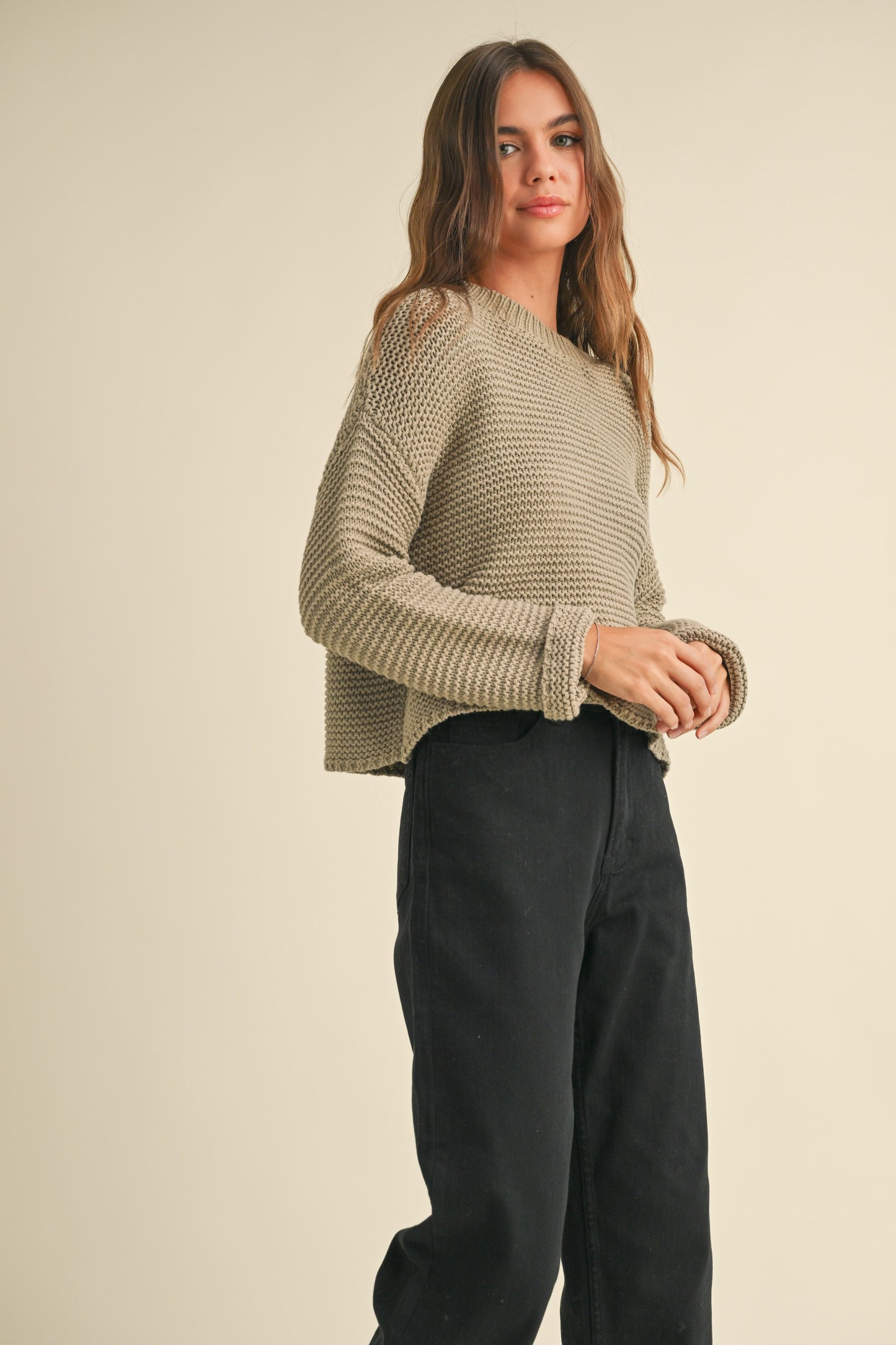 Round Neck Sweater Knitted Top in Grey Mocha
