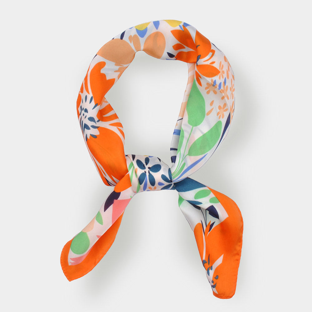 Tropical Flower Printed Square Silky Satin Bandana Scarf